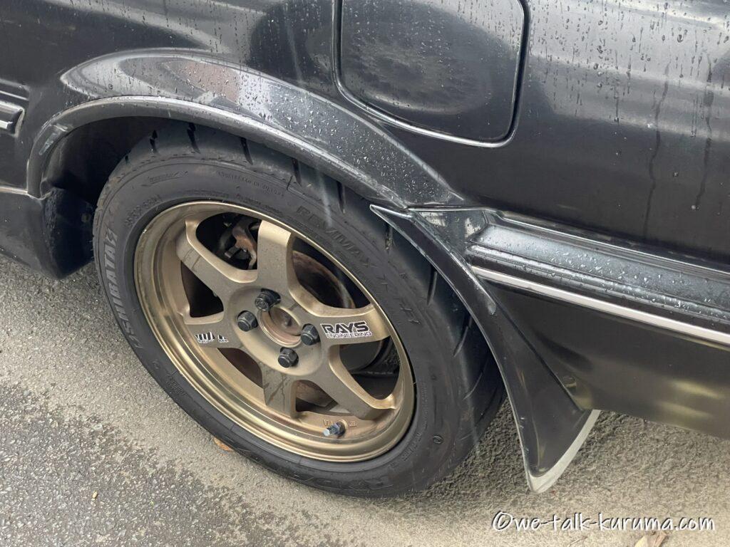 ※このクルマを購入してから5年程は保管していたのですがある日「ホイール?アレ、親戚にやった」と。(親戚は110系カローラ)・・・。