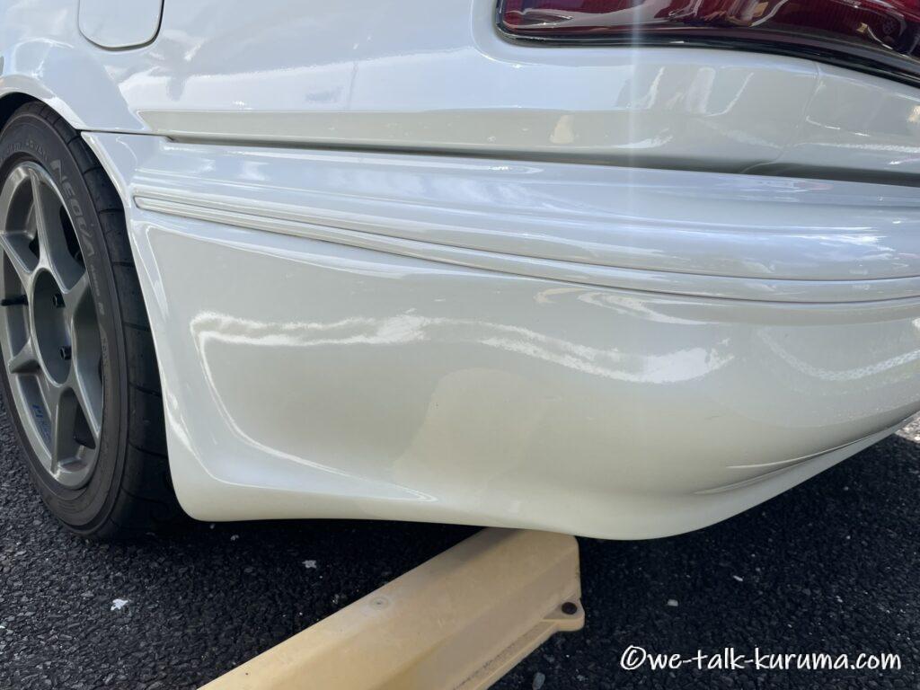 リアバンパーのフェイスは純正品ですが、アンダー部分は社外のエアロを装着しており、そこを一体化するように仕上げてあるとのこと。