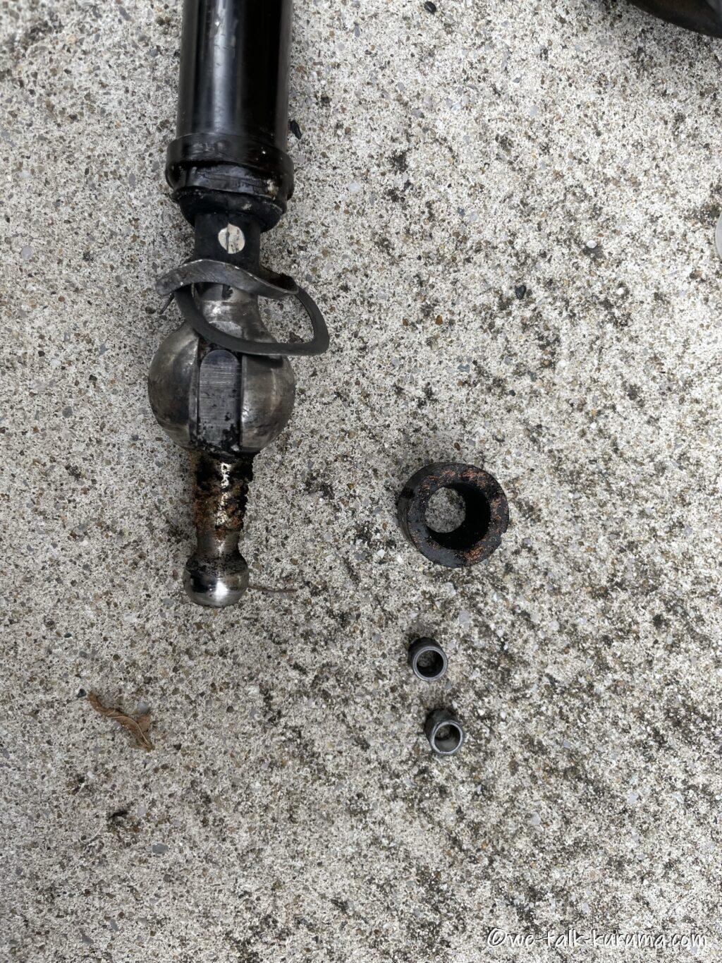 おそらく、中のブッシュが劣化しているのが原因と思うので、さっそく直してゆくことにしました。