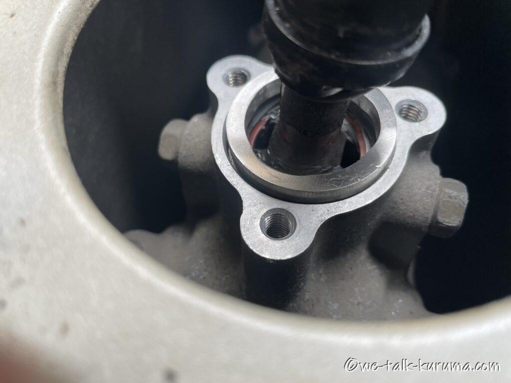 中のカラー間にあるウェーブワッシャーが押し上げているカラーを、正規の位置に収めてプレートで抑え込む感じです。あとはパーツを戻します。